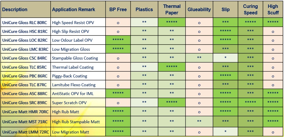 UV COATINGS UV OPVs UniCure NW Coatings Range of UV Curable Coatings UniCure UV Coatings are intended for use in the following areas:Enhancement or control of the gloss, slip or resistance properties of a print.Suitable grades of paper or grades of top-coated plastic self-adhesive labels.Hot foil stamping with the appropriate ‘stampable’ overprint varnish.UniCure LM coatings are intended for primary or secondary food packaging. TDS Step into the wORLD OF HIGHEST SHINE Select your product from below list We are manufacturing full range of UV Coatings for many other applications, see our range of UV Coatings for Industrial applications as well. Facebook-f Twitter UV Coating Main Page Don’t see what you’re looking for? Please Feel Free to Call Us +91-8750051884 Home Page